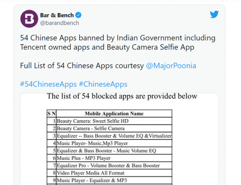 Các nhà chức trách Ấn Độ bắt đầu cấm hàng loạt các ứng dụng liên quan đến các công ty Trung Quốc vào tháng 09 năm 2020. Họ cho hay sở dĩ có quyết định này bằng cách bảo vệ chủ quyền và sự toàn vẹn của đất nước. Các quan chức cho biết Trung Quốc đã chuyển bất hợp pháp dữ liệu nhạy cảm từ người dùng Ấn Độ sang các máy chủ ở nước ngoài. Kể từ đó, hơn 300 ứng dụng đã bị chặn ở quốc gia Nam Á.
