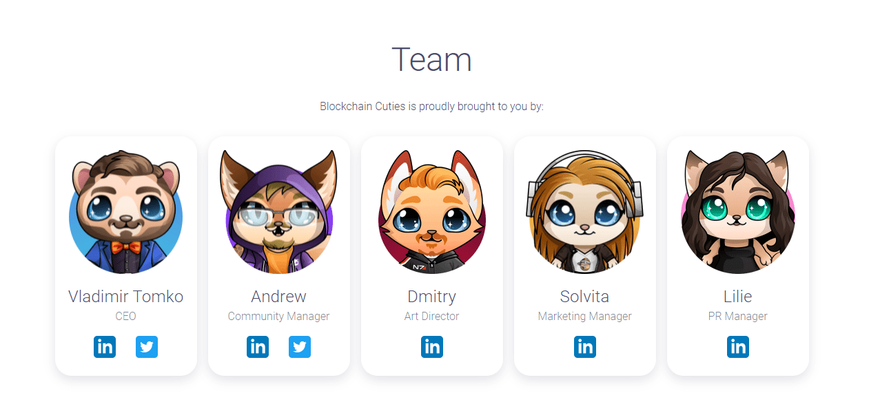 Vladimir Tomko là người sáng lập, giám đốc điều hành và nhà sản xuất của Blockchain Cuties Universe. Tomko đã tham gia vào ngành công nghiệp blockchain từ năm 2016 đến nay với rất nhiều kinh nghiệm. Trước khi làm việc trên Blockchain Cuties Universe, anh ấy đã đảm nhiệm các vị trí của nhà thiết kế trò chơi chính tại Amber Games và nhà sản xuất trò chơi tại tập đoàn Mail.ru.