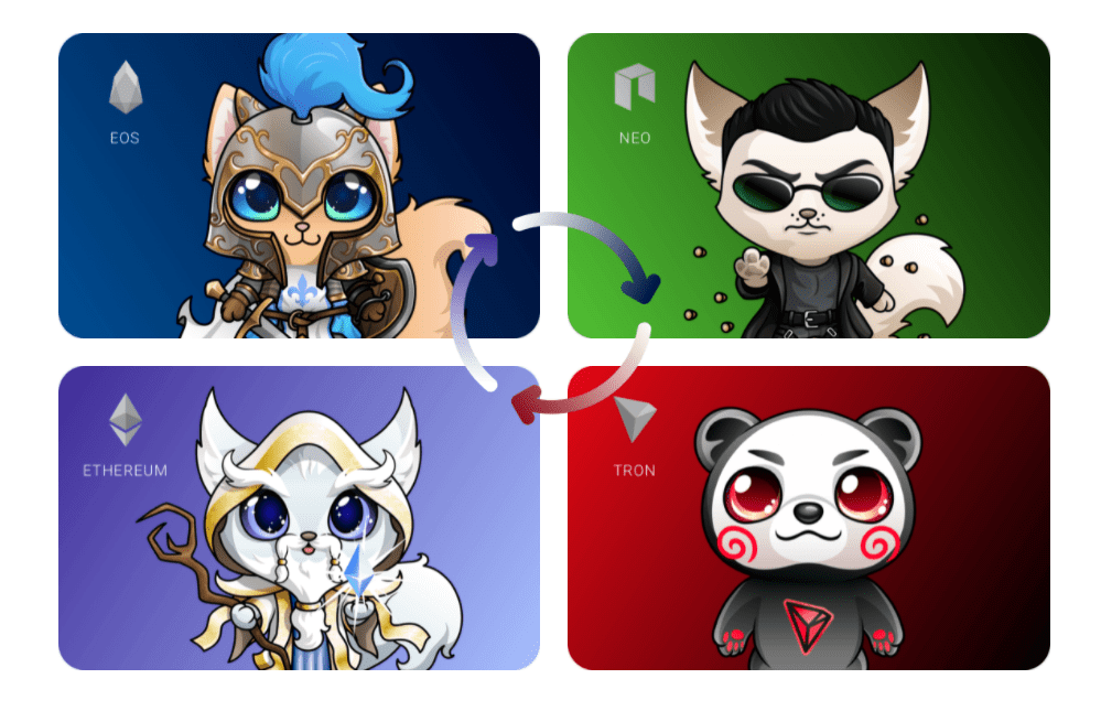 Blockchain Cuties Universe là trò chơi đầu tiên trên thị trường cung cấp cho người chơi khả năng chơi trên nhiều chuỗi khối khác nhau, mỗi chuỗi khối cung cấp trải nghiệm người dùng phù hợp và nội dung độc đáo. Hiện tại, người dùng có thể chơi trên các blockchain Ethereum, EOS, TRON và NEO trong khi nhiều blockchain khác sắp ra mắt.