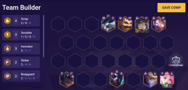 Tái Chế (Irelia, Ekko, Blitcrank, Ezreal) Thần Tượng (Seraphine, Gnar, Senna) Nhà Phát Minh (Seraphine, Ekko, Ezreal) Tiến Công (Gnar, Irelia) Vệ Sĩ (Blitcrank, Braum)
