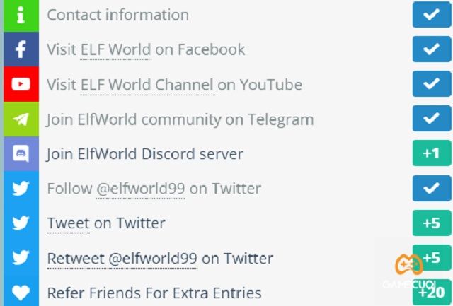 - Gia nhập kênh Discord của dự án ElfWorld (1 điểm).