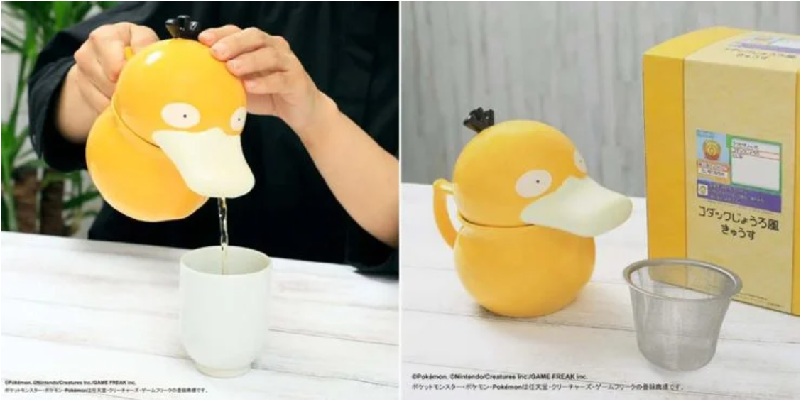 Vào ngày 4 tháng 3 năm 2022, Ensky đã mở đơn đặt hàng trước cho một ấm trà hình Psyduck dự kiến cũng sẽ xuất xưởng vào cuối tháng 4. Ấm trà có hình cơ bản là một Pokemon Psyduck với tay cầm ở lưng và không có tay hoặc chân. Tất cả những chiếc ấm đáng yêu này đều được làm thủ công bởi một nghệ nhân bằng gốm sứ minoyaki ở quận Gifu của Nhật Bản. Giá của ấm trà là 13.200 yên Nhật, quy đổi khoảng 114,15 đô la Mỹ.