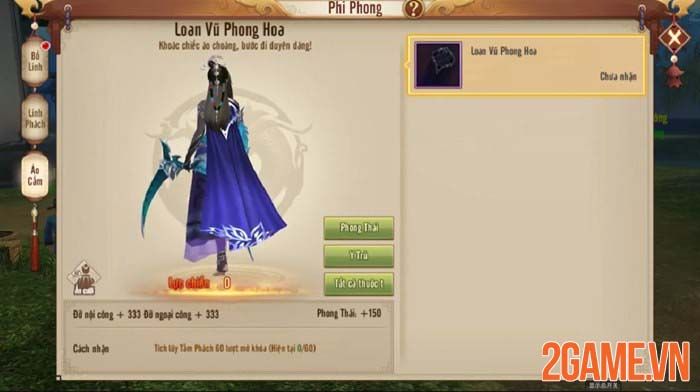 Bằng cách ảo hóa Phi Phong Ảo Cẩm, có thể khiến các nhân vật mặc những loại áo choàng khác nhau. Tuy nhiên mỗi lần chỉ có thể áo hóa thành 1 Phi Phong Ảo Cẩm.