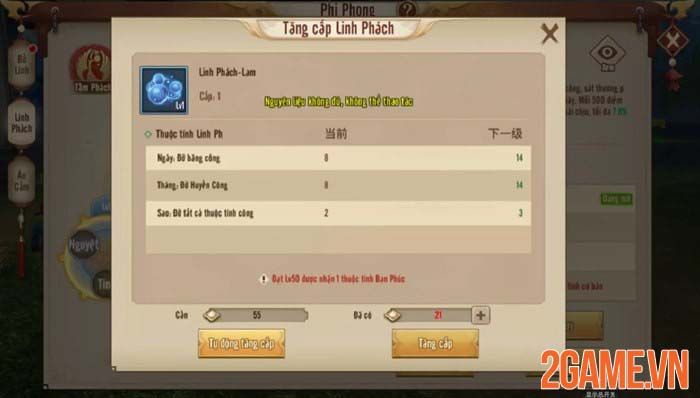 Khi Linh Phách thăng lên Lv50 sẽ nhận 1 thuộc tính ngẫu nhiên trong số các thuộc tính Nhẫn Nại, Linh Tính, Nhu Kình, Khí Kình và Nhẫn Kình.