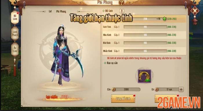 Khi điểm tăng đến giới hạn của cấp Phi Phong hiện tại thì thuộc tính sẽ tăng cấp. Cấp càng cao, giới hạn trên và dưới của thuộc tính cũng càng cao. Tuy nhiên cấp thuộc tính không thể cao hơn cấp nhân vật.