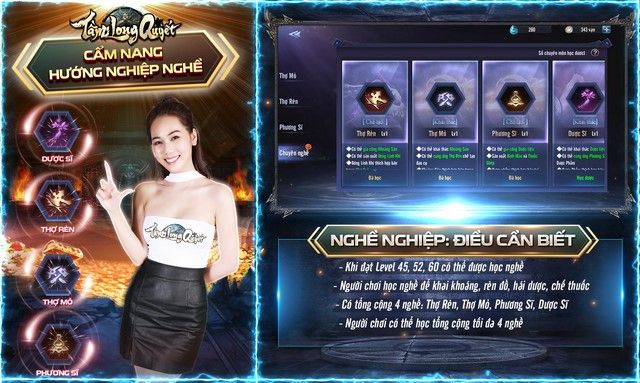 Tầm Long Quyết sẽ đưa hệ thống nghề nghiệp quay trở lại với 4 nhánh: Dược Sĩ, Thợ Rèn, Thợ Mỏ, Phương Sĩ. Mỗi nghề sẽ yêu cầu các nguyên liệu khác nhau, tạo ra các thành phẩm khác nhau và cho các chỉ số cộng thêm khác nhau.
