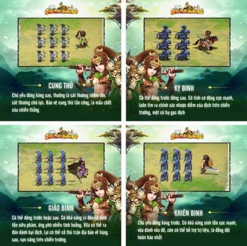 Chắc hẳn các bạn không còn lạ lẫm gì với những tựa game chiến thuật trên thị trường nữa, thế nhưng giữa quá nhiều những tựa game như vậy theo thời gian ắt hẳn có phần nào đó “chán” nếu không đổi mới. Vì vậy Siêu Thần Quân Sư ra đời để dung hoà giữa cái “gốc” chiến thuật với những đổi mới để game thủ không còn “chán ăn” như trước nữa. Đầu tiên phải kể đến tính năng binh chủng.