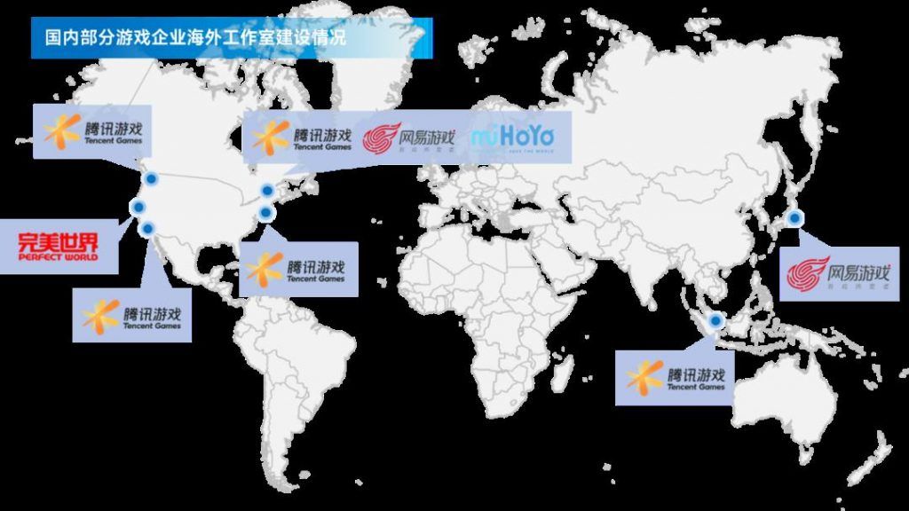 Trong những năm gần đây, nhiều công ty game lớn trong nước đã thành lập một số studio ở nước ngoài, đồng thời tiếp tục tăng cường đầu tư vào nghiên cứu và phát triển game ở nước ngoài. Tencent hiện có các studio hoặc văn phòng ở nước ngoài ở Los Angeles, Seattle, Boston, Montreal, Singapore và những nơi khác, trong đó ba studio mới ở nước ngoài sẽ được bổ sung vào năm 2021.