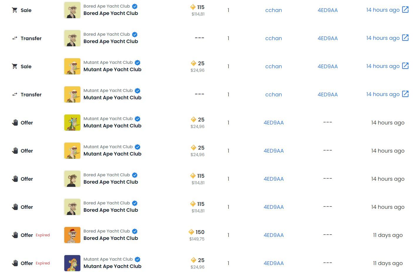 Cụ thể, tài khoản OpenSea có tên là “cchan” đã chấp nhận bán NFT Bored Ape Yacht Club (BAYC) số 835 của mình với giá chỉ 115 DAI, tức 835 USD. Con số này thấp hơn đến 99,9% so với giá sàn của BAYC vào thời điểm khi đó là 105 ETH (tương đương 385.000 USD). BAYC #835 đã được cchan bỏ ra đến 50.000 USD để mua vào hè năm ngoái.
