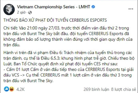(Nguồn: mgn.vn/cerberus-esports-nhan-an-phat-tu-btc-vcs-vi-su-thieu-chuyen-nghiep-d12593.html)
