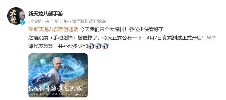Theo thông tin mới nhất, bản Tân Thiên Long Bát Bộ Mobile do Tencent phát hành (Changyou sản xuất) sẽ bước vào giai đoạn thử nghiệm cuối trước khi phát hành chính thức. Thông báo mới được đăng tải trên trang Weibo chính thức của trò chơi này.