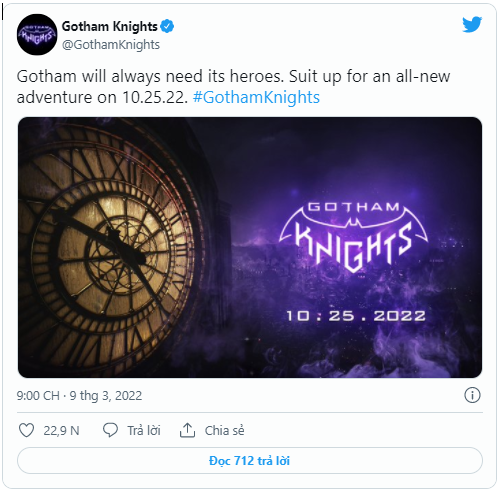 Người hâm mộ cũng rất tò mò về các trò chơi DC sắp tới của WB, đã được nhắm mục tiêu ra mắt vào năm 2022. Trong khi Suicide Squad: Kill the Justice League được cho là đã được lùi sang năm 2023. Mặt khác, Gotham Knights cuối cùng đã xác nhận khi nào người hâm mộ có thể chạm tay vào tựa game.