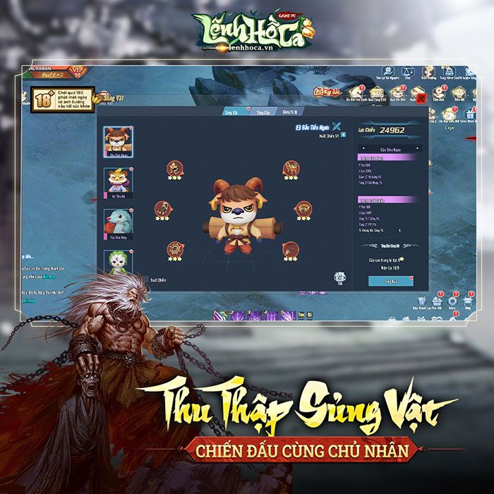 Hệ thống sủng vật trong game Lệnh Hồ Ca phải nói là cực dễ thương, hệ thống sủng vật chính là những con pet đồng hành hỗ trợ chiến đầu cho chủ nhân. Mỗi sủng vật có hệ thống trang bị riêng, chỉ số cơ bản của mỗi sủng vật cũng khác nhau, có những sủng vật thiên về tấn công, phòng thủ hoặc sinh lực. Tối đã người chơi có thể sử dụng cùng lúc 2 sủng vật.