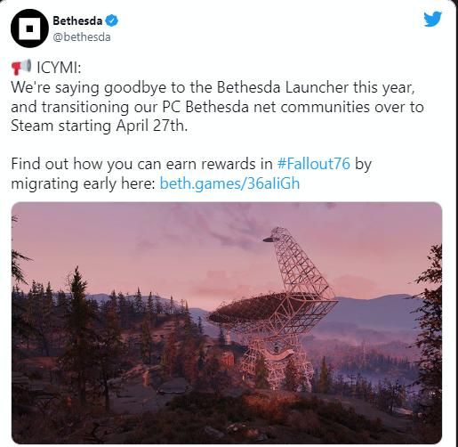 Bethesda Game Launcher sẽ ngừng hoạt động và game thủ sẽ có thể di chuyển thư viện trò chơi và số tiền còn lại sang Steam.