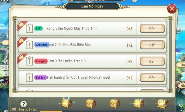 Các hoạt động thường ngày của game luôn có rất nhiều, với phần thưởng đa dạng. Bạn có thể tham gia Boss Rush, Người Máy Thức Tỉnh, đi Kho Báu Biển Sâu, các hoạt động Guild, Khiêu Chiến Bá Vương, Đấu Trường,… Tất cả đều mang đến rất nhiều vật phẩm quý cao cấp,nhưng đòi hỏi lượng thời gian khá lớn mà bạn chỉ nên đầu tư khi hoàn thành những mục ưu tiên kể trên.
