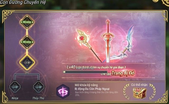 Giai đoạn đầu, game thủ sẽ có các kỹ năng cơ bản chung của từng class. Lần lượt đạt tới các mốc level 29, 31, 40 và 48, bạn sẽ nhận được các nhiệm vụ chuyển hệ. Sau đó, người chơi sẽ có định hướng riêng của mình với 2 nhánh tiếp theo để lựa chọn. Nó quyết định phong cách, vai trò và vị trí của game thủ trong từng team cụ thể.