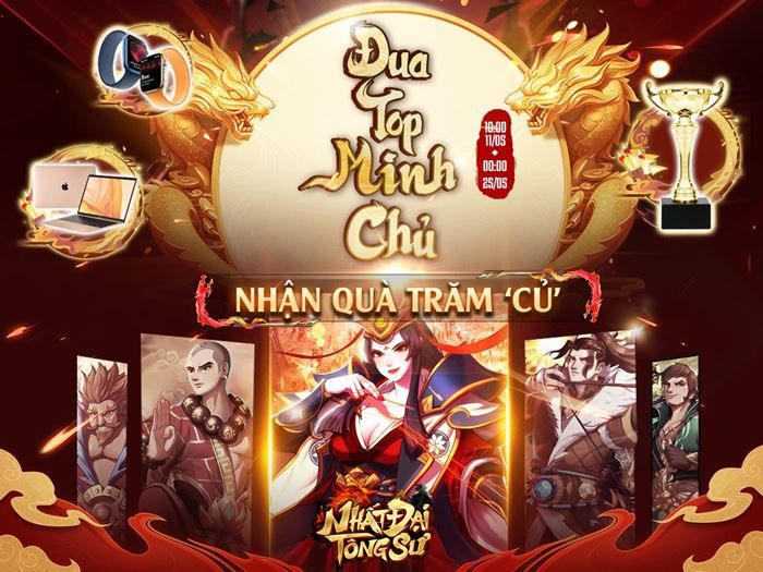 Đặc biệt, sự kiện ĐUA TOP MINH CHỦ – NHẬN QUÀ “TRĂM CỦ” cũng chính thức được phát động, tạo nên động lực đua tranh cực lớn cho toàn bộ cao thủ võ lâm. Cụ thể, từ 10h00 ngày 11/05 đến 00h00 ngày 25/05, tất cả các server khai mở trong thời gian này đều cùng so tài trong cuộc đua xây dựng đội hình, nâng cao chiến lực, với các phần quà hậu hĩnh: