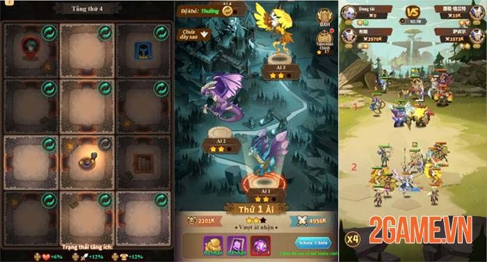 Sau khi xây dựng xong đội hình, bạn sẽ được thử thách thông qua các nhiệm vụ phụ bản, thu thập, bồi dưỡng đội hình rồi thi đấu trực tuyến theo hình thức solo hay tổ đội theo bang hội. Nếu người chơi chỉ muốn cày cuốc thì có những tính năng thám hiểm mê cung, khiêu chiến địa lao, con đường viễn chinh với những phần thưởng là nguyên liệu, vàng, mảnh tướng đầy hậu hĩnh.