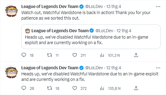 Những lỗi này đã nhanh chóng được Riot Games để mắt sau khi bị Vandiril - thánh bug LMHT bóc phốt. Ngay lập tức, Đá Tỏa Sáng đã bị vô hiệu hoá để fix lỗi. Cụ thể, lỗi của Đá Tỏa Sáng cho phép người chơi tích lũy nhiều Vàng hơn số Vàng thực tế mà họ có bằng cách mua và bán trang bị này khi đứng ở Bệ Đá Cổ.
