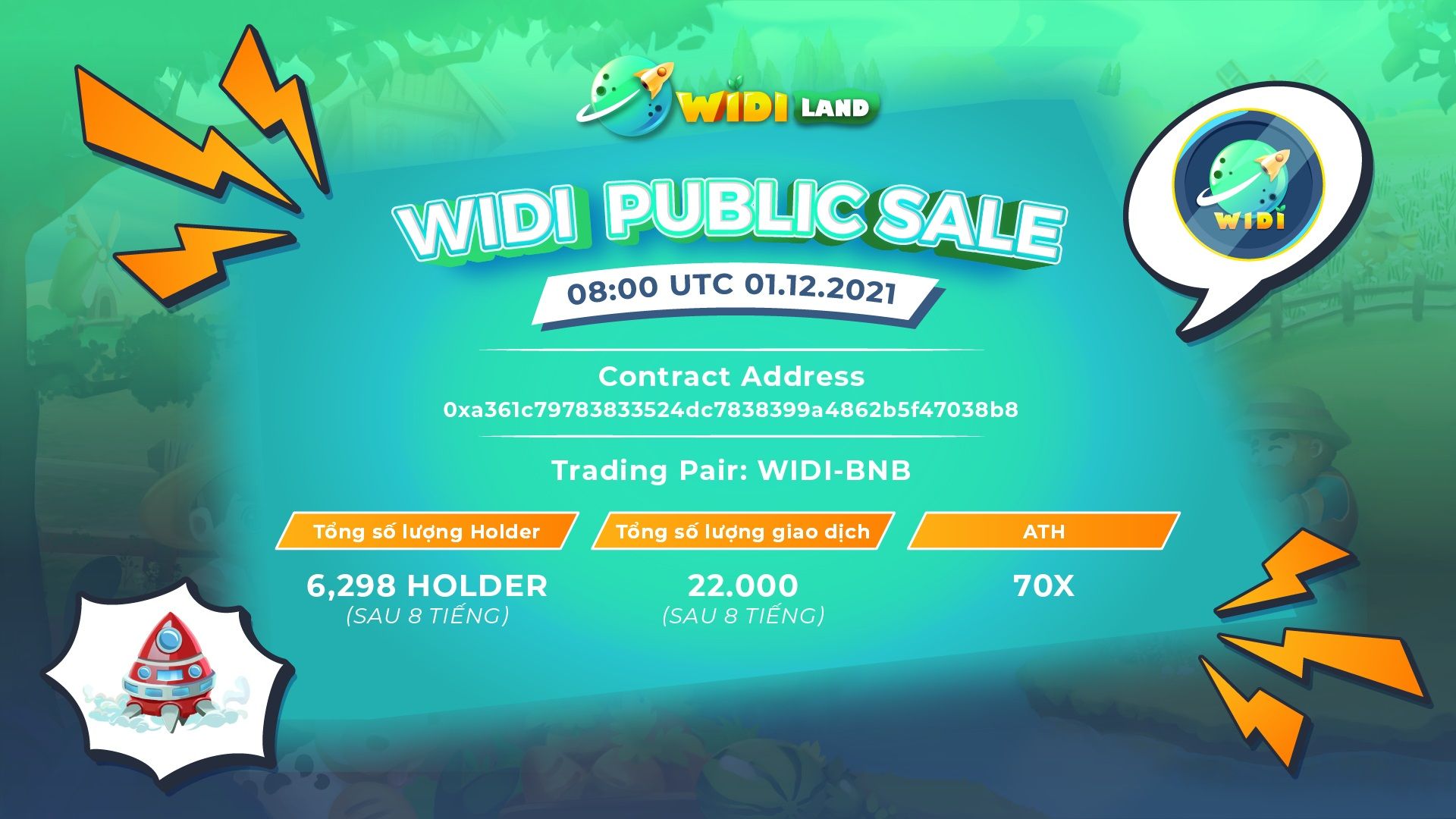 WidiLand đã chính thức niêm yết trên Pancake Swap vào ngày 01/12/2021. Chỉ sau 08 tiếng kể từ thời điểm lên sàn, tổng số lượng holder đã đạt được là 6,289 người, tổng số lượng giao dịch thống kê là hơn 22.000 và đạt được ATH là 70x.
