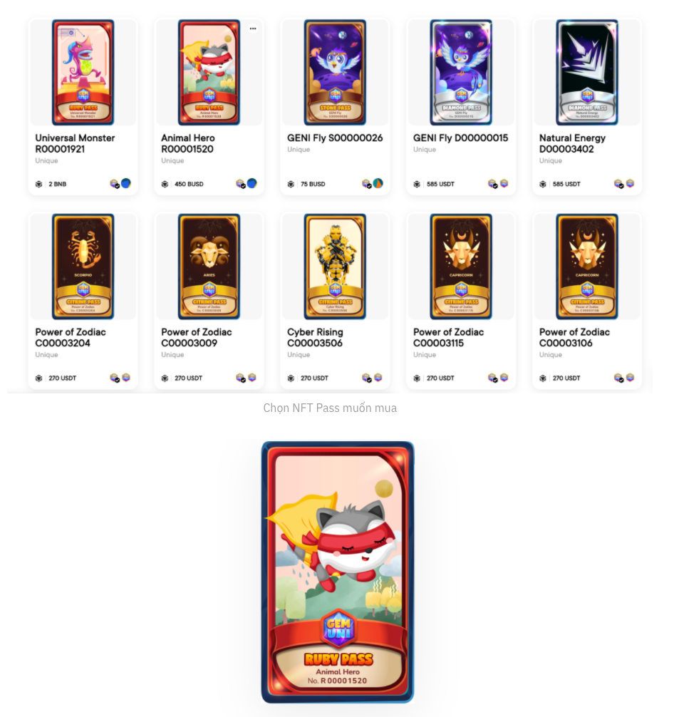 Bước 3: Chọn GENI Pass NFT muốn mua và nhấp vào “Buy Now”