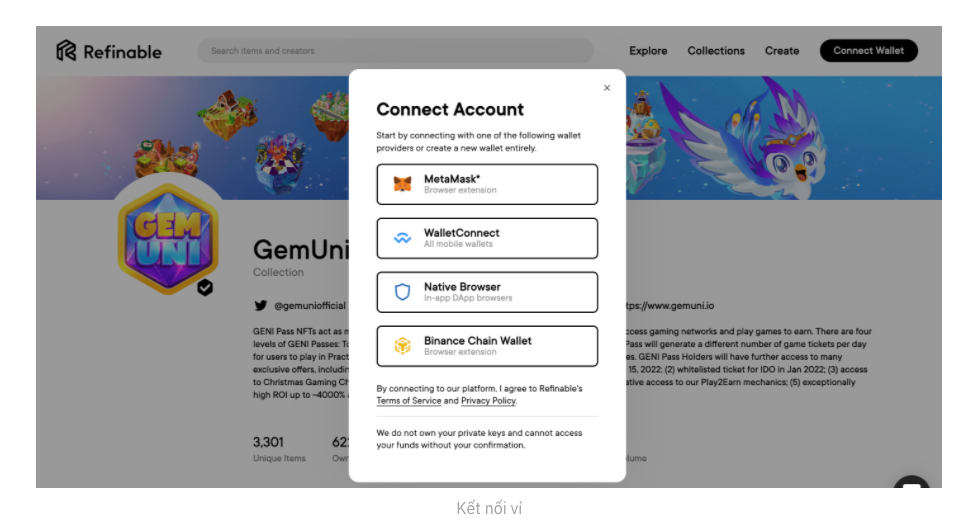 - Sau khi mua: Các NFT sẽ được GemUni chuyển vào ví cá nhân của người dùng trong vòng 48 giờ sau.
