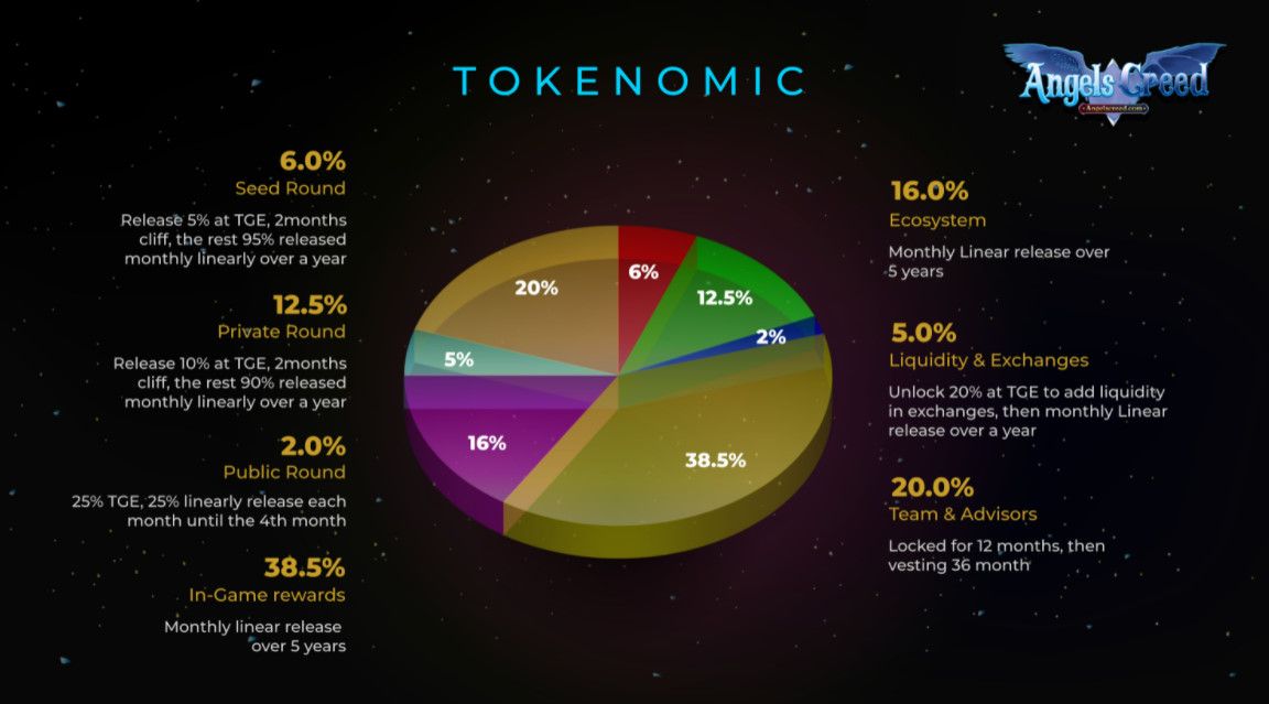 Đến với AngelsCreed người chơi có thể tạo ra các nhân vật NFT trong game và bước vào thế giới, tạo ra một bộ sưu tập tuyệt vời! Bằng cách sử dụng mã token ANGEL và NFT, Angels Creed sẽ xây dựng một hệ sinh thái chơi để kiếm tiền bền vững.