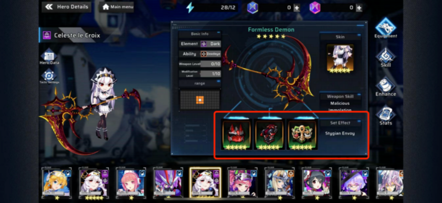 Bộ trang bị này sẽ kích hoạt các hiệu ứng sau: Khi HP của Celeste giảm xuống dưới 40%, cô ấy đi vào Coffin of Eversleep, phục hồi HP, tăng khả năng chống chịu và cũng có thể giải giáp những kẻ địch xung quanh trong một lượt. Celeste có thể sử dụng kỹ năng này: Thức tỉnh từ Coffin thoát ra khỏi quan tài, và điều này làm giảm thời gian hồi chiêu cuối của cô ấy đi 5.