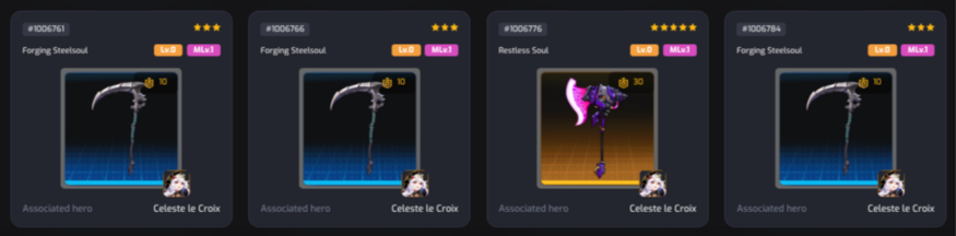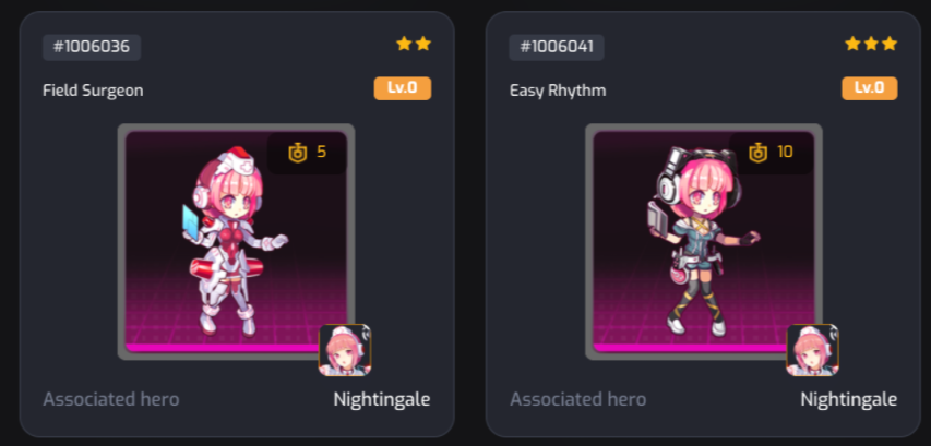 Xin lưu ý rằng biểu đồ này chỉ áp dụng cho NFT Vũ khí & Trang bị. Da anh hùng được thể hiện khác nhau. (Hero Skin 2 sao và 3 sao có nền màu tím, Hero Skin 4 sao và 5 sao có nền màu cam).