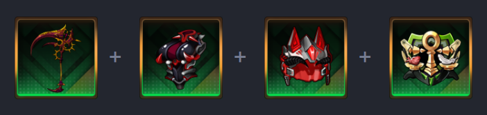 - Bộ trang bị 4 mảnh (vũ khí, mũ đội đầu, bộ đồ chiến đấu, huy hiệu)