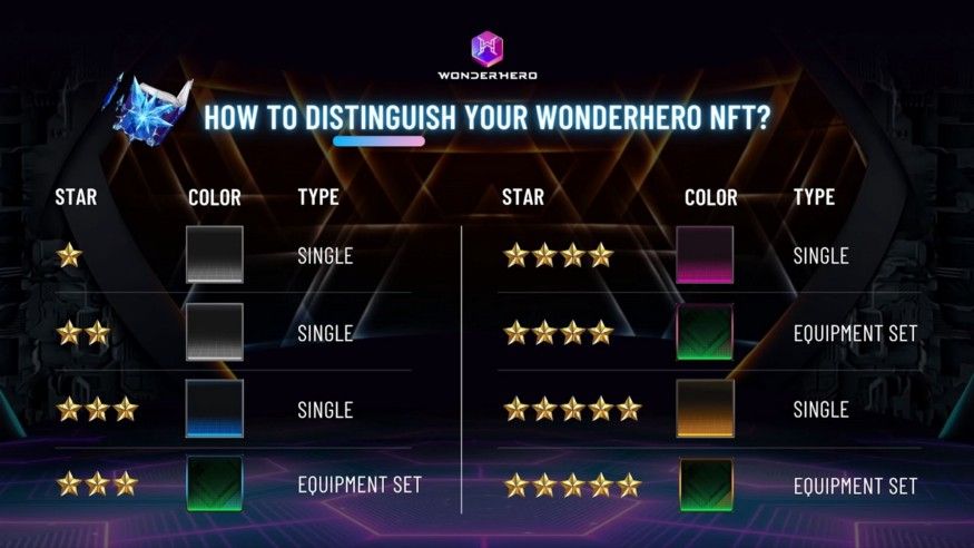 Người dùng có thể nhận thấy, NFT WonderHero có nhiều màu nền khác nhau, xếp hạng sao và một số còn có thiết kế viền khác nhau. Vậy làm thế nào để phân biệt và hiểu được tất cả nghĩa là gì?