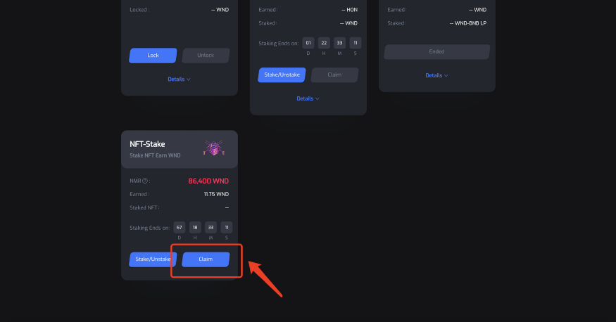 - Người dùng có thể kiếm được token WND, tích lũy và claim chúng khi cần.