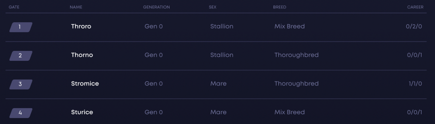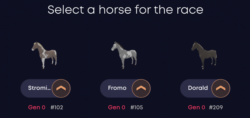 Những chú ngựa giàu DNA của Derace đang rất nóng lòng chờ đợi để bộc lộ hết khả năng của chúng trên đường đua. Hãy tham gia đua ngựa NFT và thử cảm giác trở thành nhà vô địch cuối cùng của metaverse DeRace.