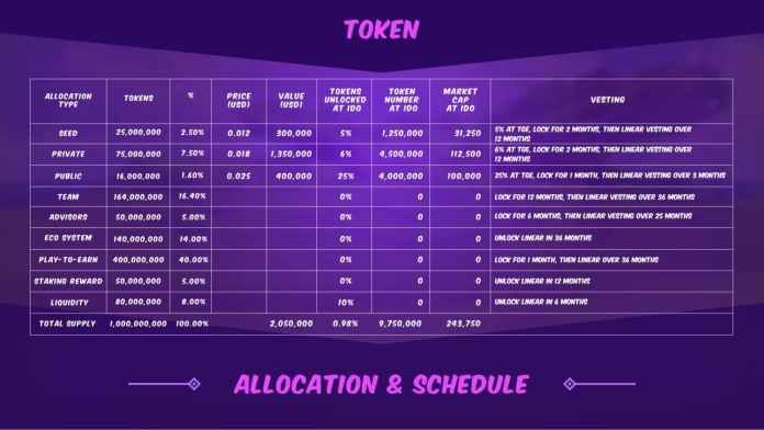 - Vesting: 6% tại TGE, khóa trong 2 tháng, sau đó trả dần trong 12 tháng