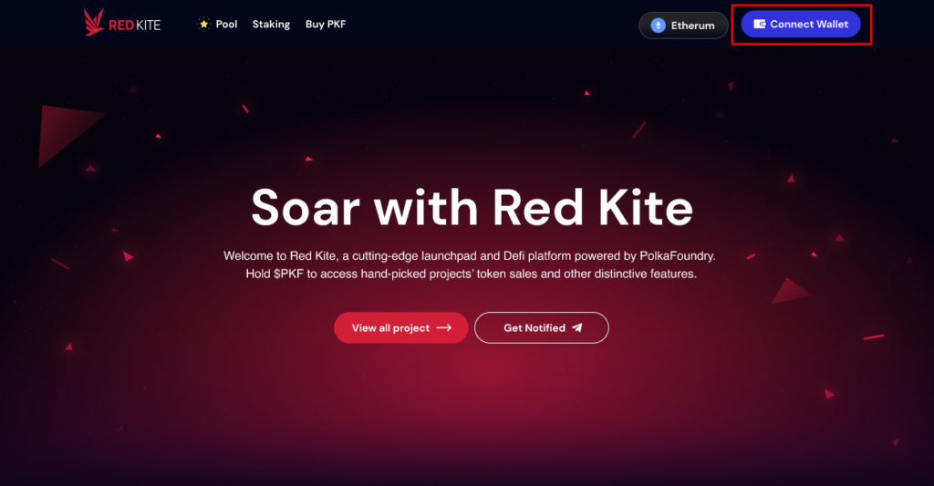 Bước 1: Truy cập https://redkite.polkafoundry.com và Connect Wallet