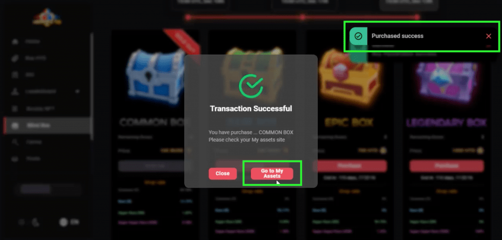 BƯỚC 6: Vào mục go to my assets để kiểm tra Box NFT anh em đã mua