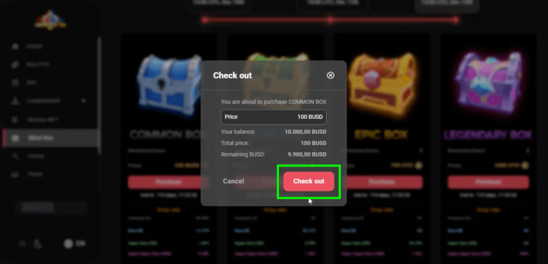 Box NFT có 4 loại và mỗi loại chứa các Hero thuộc nhiều độ hiếm: Common Box và Rare Box phải được mua bằng BUSD. Epic và Legendary Box phải được mua bằng HTD.