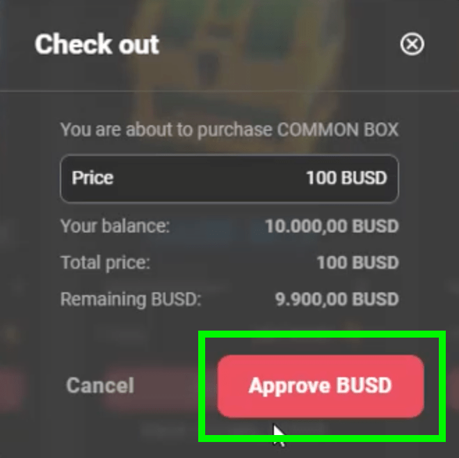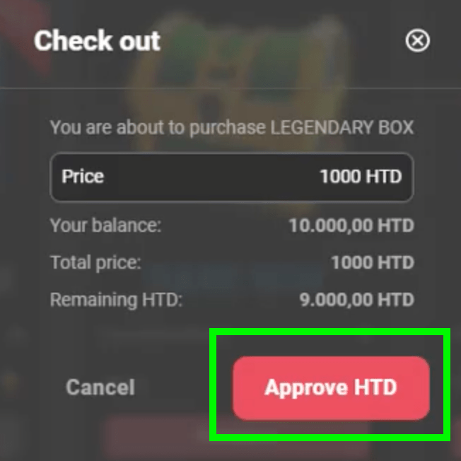 BƯỚC 4: Mua bằng BUSD hoặc HTD (tùy thuộc vào Box NFT mà anh em mua), sau đó nhấn vào Approve BUSD hoặc Approve HTD
