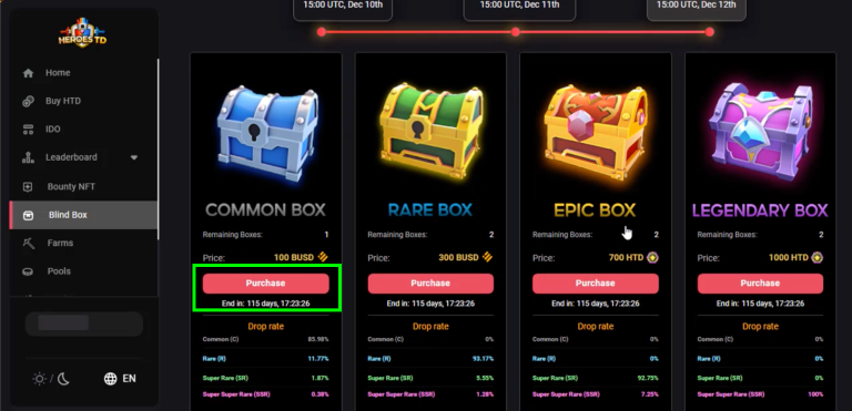 Heroes TD – Hướng Dẫn Mua Box NFT Blind