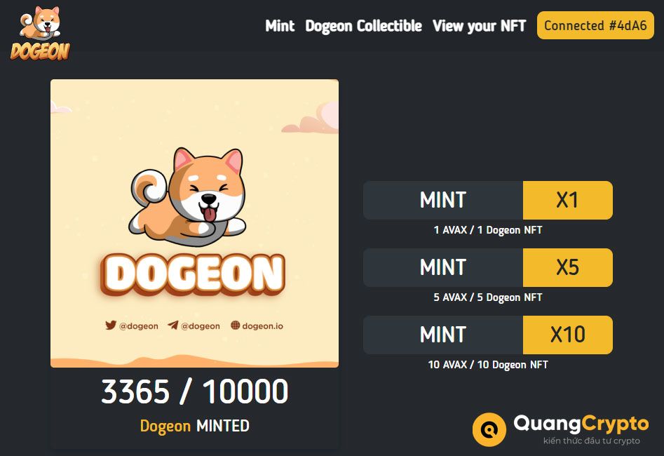 Giá mỗi Dogeon NFT là 1 AVAX. Quyền lợi của những người mua NFT