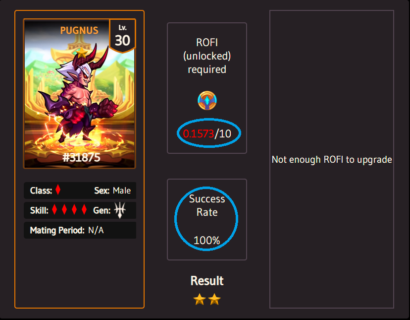 Để nâng cấp được anh em cần chuẩn bị 10 ROFI. Anh em có thể mua ROFI trên pancakeswap hoặc lấy từ phần thưởng hàng ngày của anh em để nâng cấp.