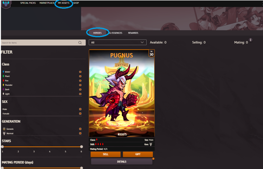 Truy cập vào Website: App/herofi.io và chọn mục “MY ASSETS” sau tiếp tục chọn “Heroes”