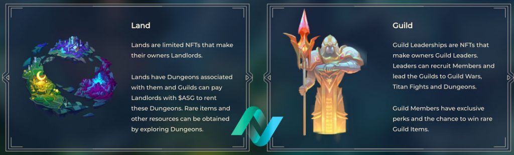 • Land và Guild: là sản phẩm giới hạn chỉ có thể sở hữu tại Genesis Sale hoặc qua thị trường thứ cấp.