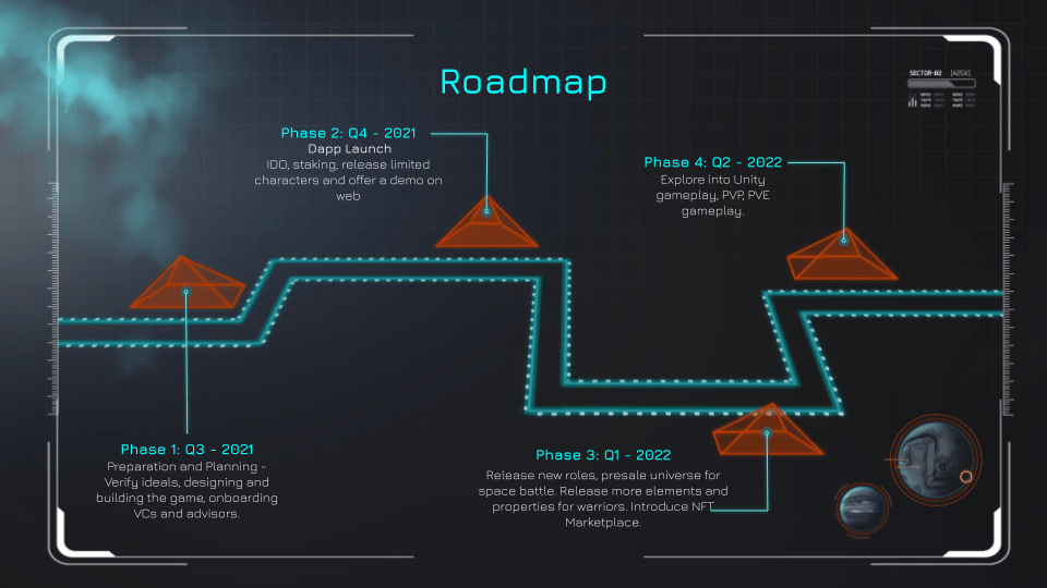 Combat – Vũ trụ là một nơi rộng lớn và tiềm ẩn những nguy hiểm. Người chơi sẽ có thể tùy chọn chiến đấu ở chế độ PvP hoặc PvE. Cả hai chế độ đều có cơ hội nhận thưởng cho những người tham gia bằng mã thông báo $WARS.