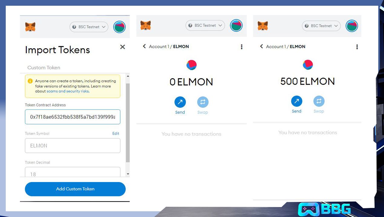 • Sau đó Add Contract ELEMON để hiển thị trên ví: