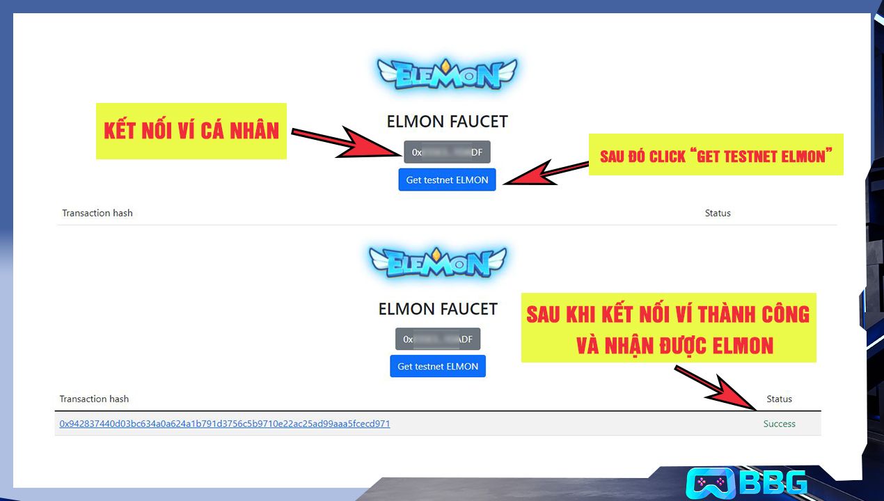 • Dán địa chỉ vào link để nhận ELMON Testnet: