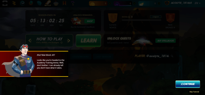 Bạn sẽ nhận được thông báo chào mừng đến với Splinterlands. Trong đó có thông tin tên tài khoản tạm thời mà bạn có thể dùng để chơi game. Sau khi mở khóa Spellbook, bạn sẽ có toàn quyền thay đổi tên theo ý thích của mình cũng như thiết lập các thông tin quan trọng khác.