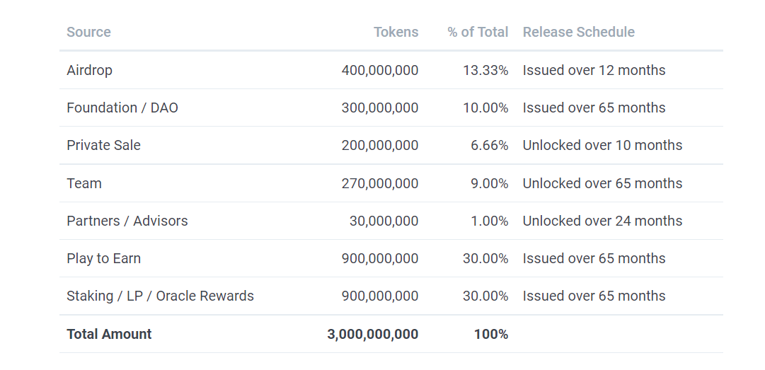 • Sử dụng trong trò chơi và kiếm lợi nhuận để giúp nền tảng duy trì trong tương lai sau khi tất cả các mã thông báo ban đầu được phân phối.