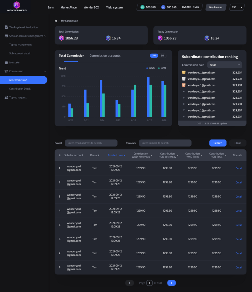 Gây ảnh hưởng đến game thủ trên toàn thế giới luôn là nhiệm vụ quan trọng của WonderHero, và nhóm đã làm việc chăm chỉ để xây dựng không chỉ một trò chơi tuyệt vời mà còn là một hệ thống toàn diện cho WonderHero Guild. WonderHero Yield System là hệ thống quản lý scholar nhanh chóng, hiệu quả và tiết kiệm đến 80% thời gian dành cho các Guild. Vì vậy, nếu người dùng vẫn đang sử dụng trang tính excel để quản lý scholar thì đây sẽ là cứu cánh hữu ích dành cho người dùng.