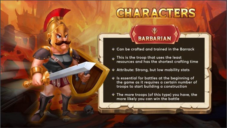 Người Barbarian dũng cảm và mạnh mẽ, họ là phần cần thiết của mọi trận chiến. Với chỉ số thiên về sức mạnh nhưng độ cơ động thấp, người Barbarian có thể tham gia chiến đấu thông qua chế tạo và huấn luyện tại Barrack.